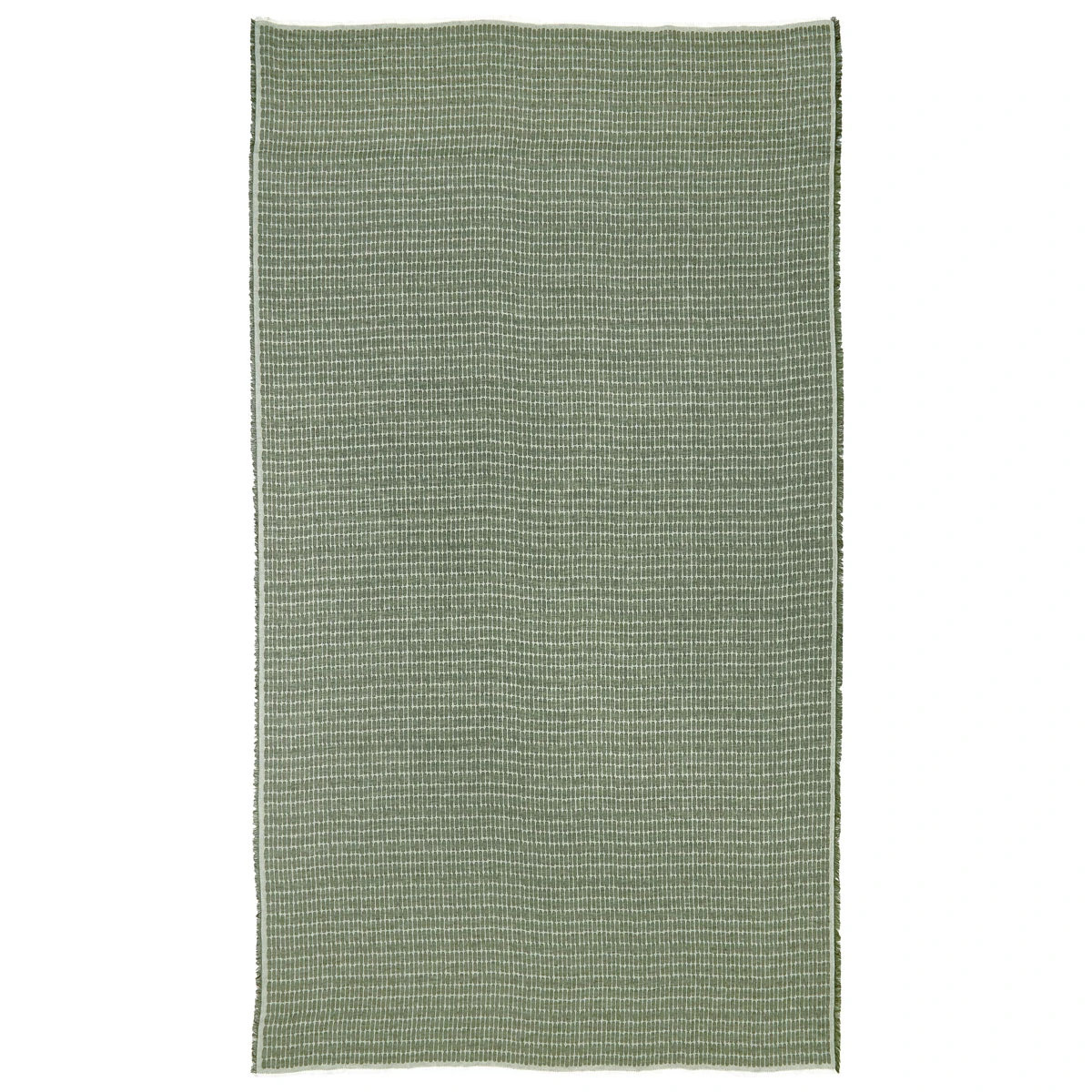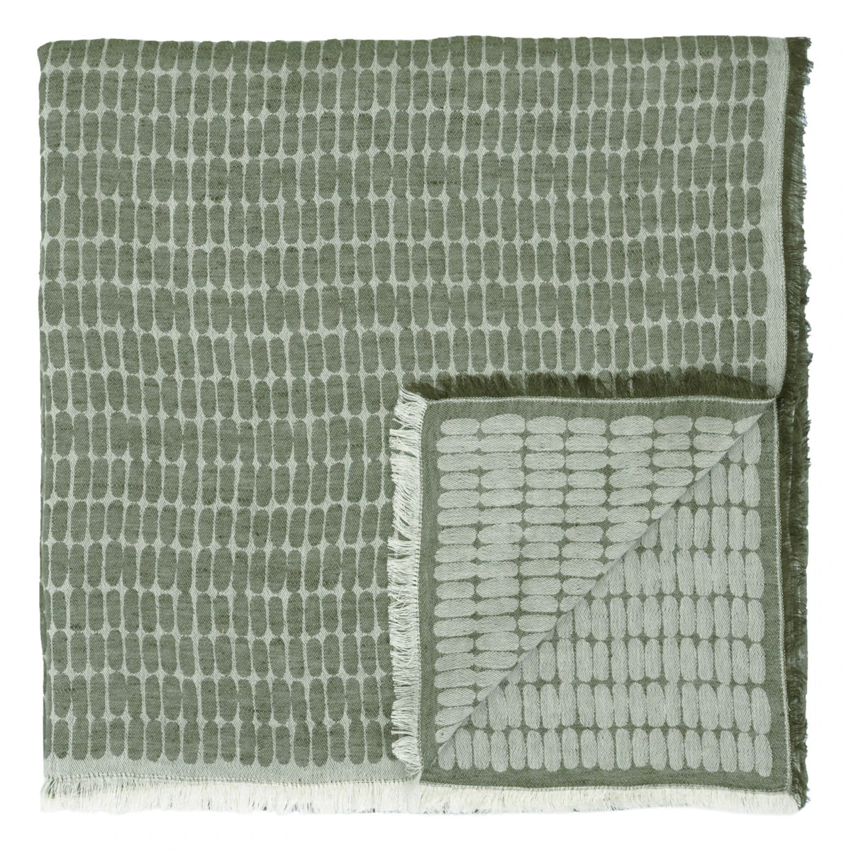 Marimekko’s prints have the ability to merge modern and retro in a timeless way. Called Alku (Initial), the design depicts the seeds from which the flowers of Marimekko’s bold floral designs grow. Here, it’s featured on a washed linen-cotton blend tablecloth. The soft material matches the subdued shades and a all-around fringe (green on two sides, ivory on the other) gives it a cozy feel. Machine washable, it’s easy to keep it clean and on display for meals both casual and formal.