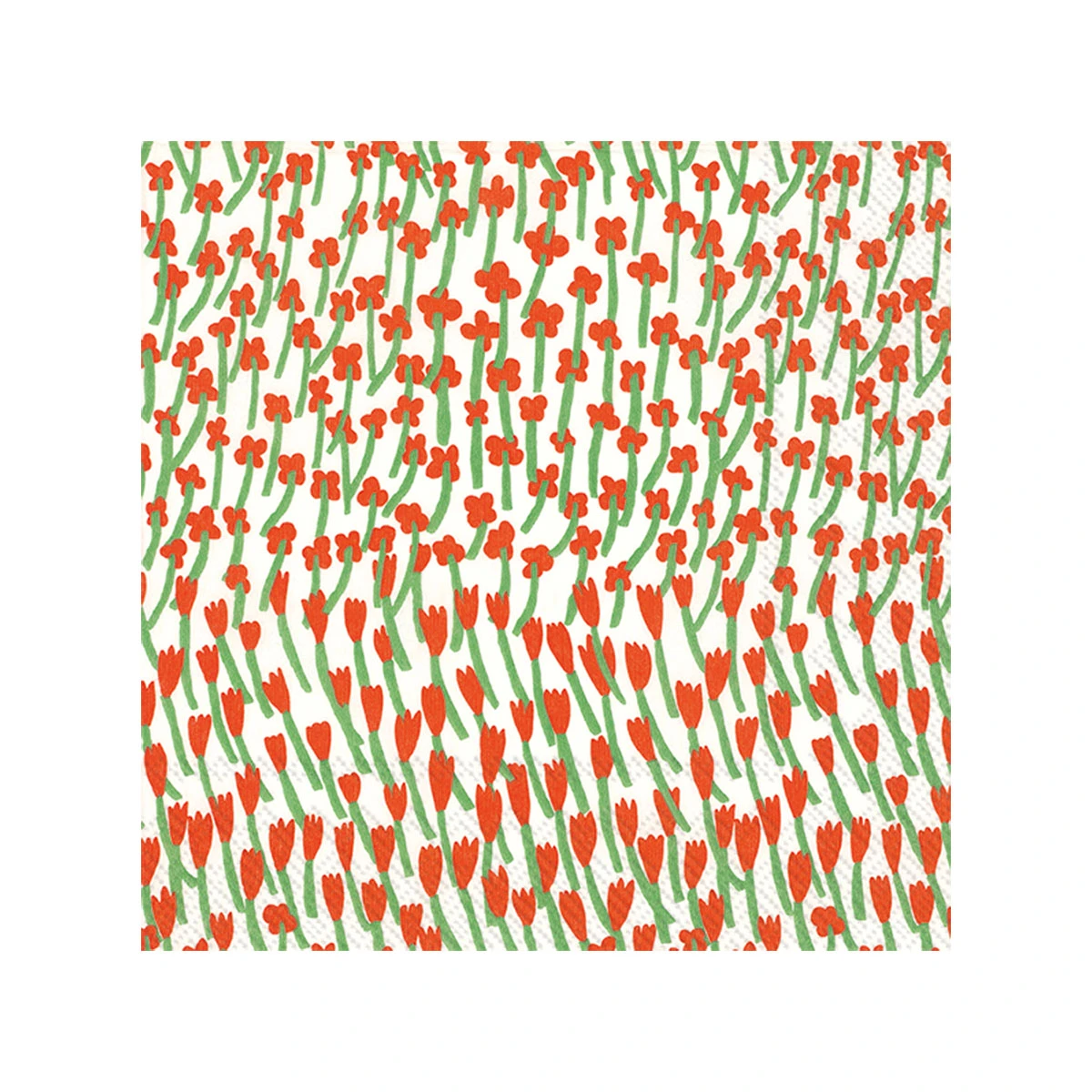 The idea for the Apilainen (Small Clover) pattern came to designer Lotta Maija while at her summer cottage. An easterly wind brought big waves to shore, causing the yard’s flowery grass to sway back and forth in a memorable way. Dine with fields of flowers using this pack of 20 Marimekko napkins. Printed with non-toxic water-based colors on recycled tissue, these 100% biodegradable napkins are a more eco-friendly way to enjoy the convenience of disposable napkins. The pack of 20 3-ply paper napkins is the perfect way to bring personality to a party or fun to everyday dining.