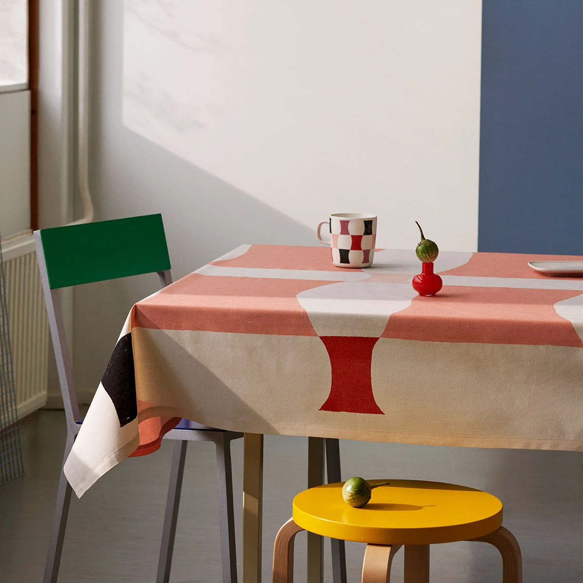 Dress up the table setting with some personality and pops of color with Marimekko’s Atalaya tablecloth. Known for combining expressive and abstract figures with familiar, everyday shapes, Barcelona-based German artist Sabine Finckenauer crafted this Atalaya pattern through inspiration from an old chess set she discovered at a Madrid flea market. Atalaya means “watchtower” in Spanish, representing Finckenauer’s aim to create shapes that resemble a tower. The Marimekko Atalaya tablecloth is made from 100% cotton and is machine washable when needed.