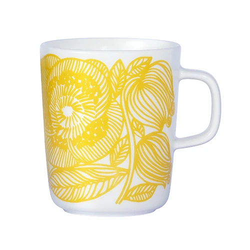 Wake up on the bright side when you use this cheery mug to sip your morning tea or cup of joe. Adorned with Aino-Maija Metsola’s Kurjenpolvi (Geranium) pattern in a sunny shade of yellow, this smooth-lined mug will feel perfect cradled in your hand. The sturdy vitreous porcelain is microwave, oven, dishwasher and freezer safe, so it will be your go-to mug to grab without hesitation. A piece of functional art, theMarimekko Geranium White/Yellow Mug will make your indulging in your favorite beverage a beautiful moment to cherish.