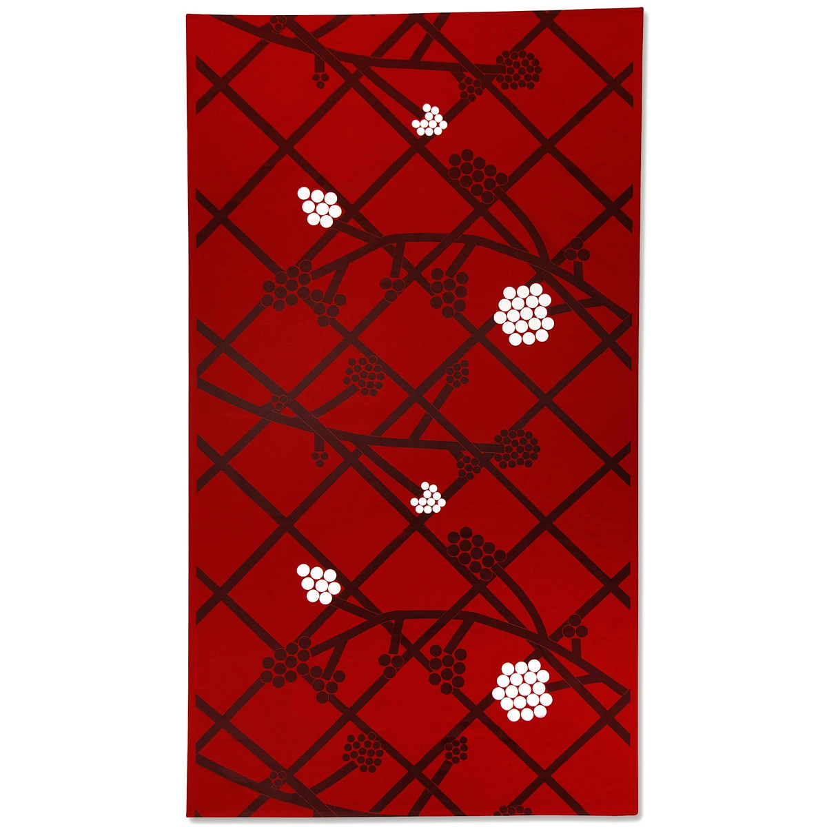 Hydrangeas bloom beautifully in plum and white against a red background, creating an elegant backdrop to your meals with the Marimekko Hortensie Tablecloth. Whether you are entertaining guests or sitting down to a meal with the family, this tablecloth is the perfect addition to your kitchen décor both during the holidays and year-round. Made of 100% cotton, this tablecloth is machine washable, making clean up a breeze between meals.