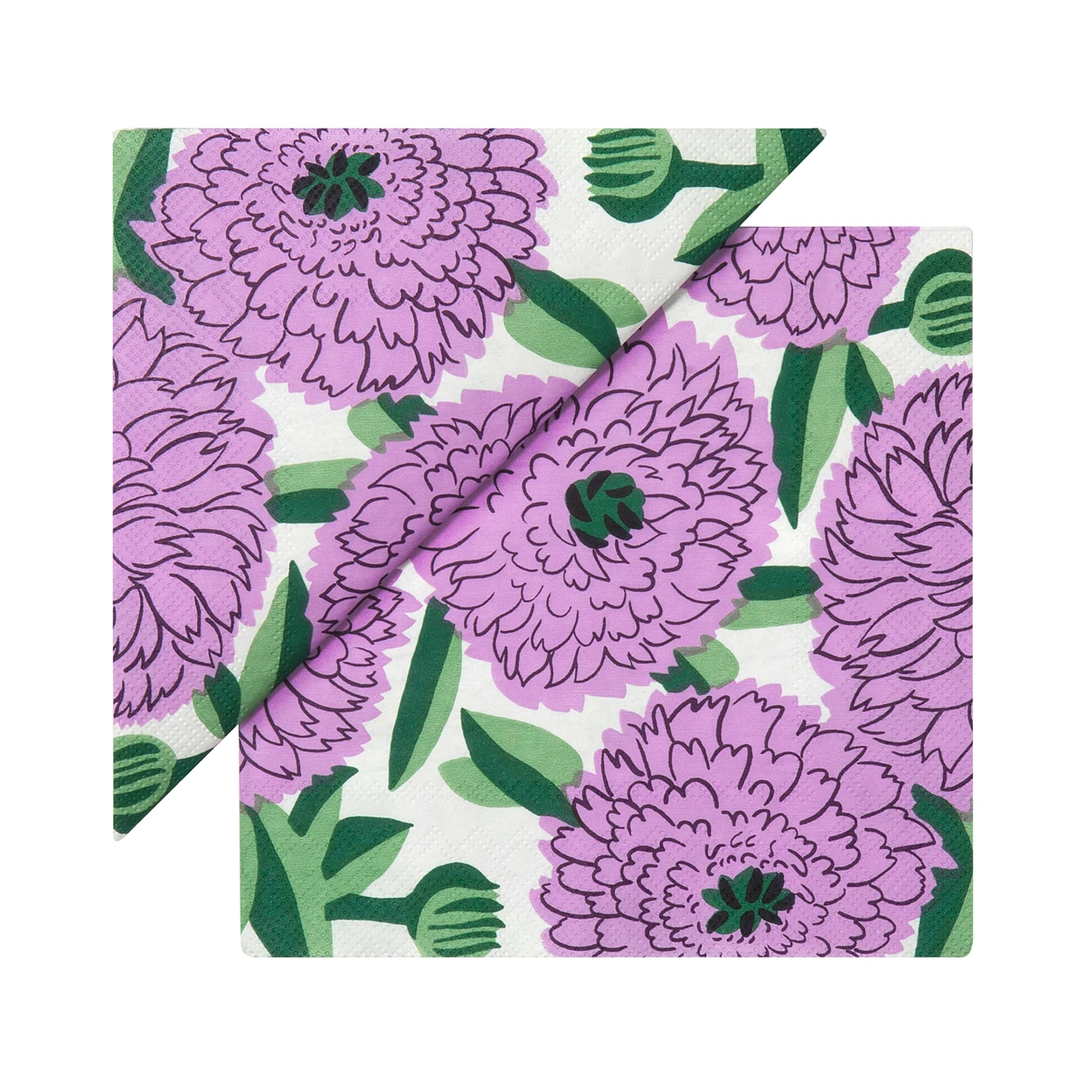 Meaning spring in Italian, “Primavera” is a pattern painted by Maija Isola when she was living in Oran, Algeria. Because of this, it’s thought it has a touch of homesickness in it. Perhaps Isola was yearning to be back in Finland where wildflowers like marigold bloom in the morning dew. Here, the flowers are stunning in shades of soft lilac and lush green on a crisp white backdrop. Printed with non-toxic water-based colors on recycled tissue, these 100% biodegradable napkins are a more eco-friendly way to enjoy the convenience of disposable napkins. The pack of 20 3-ply paper napkins is the perfect way to bring personality to a party or fun to everyday dining.