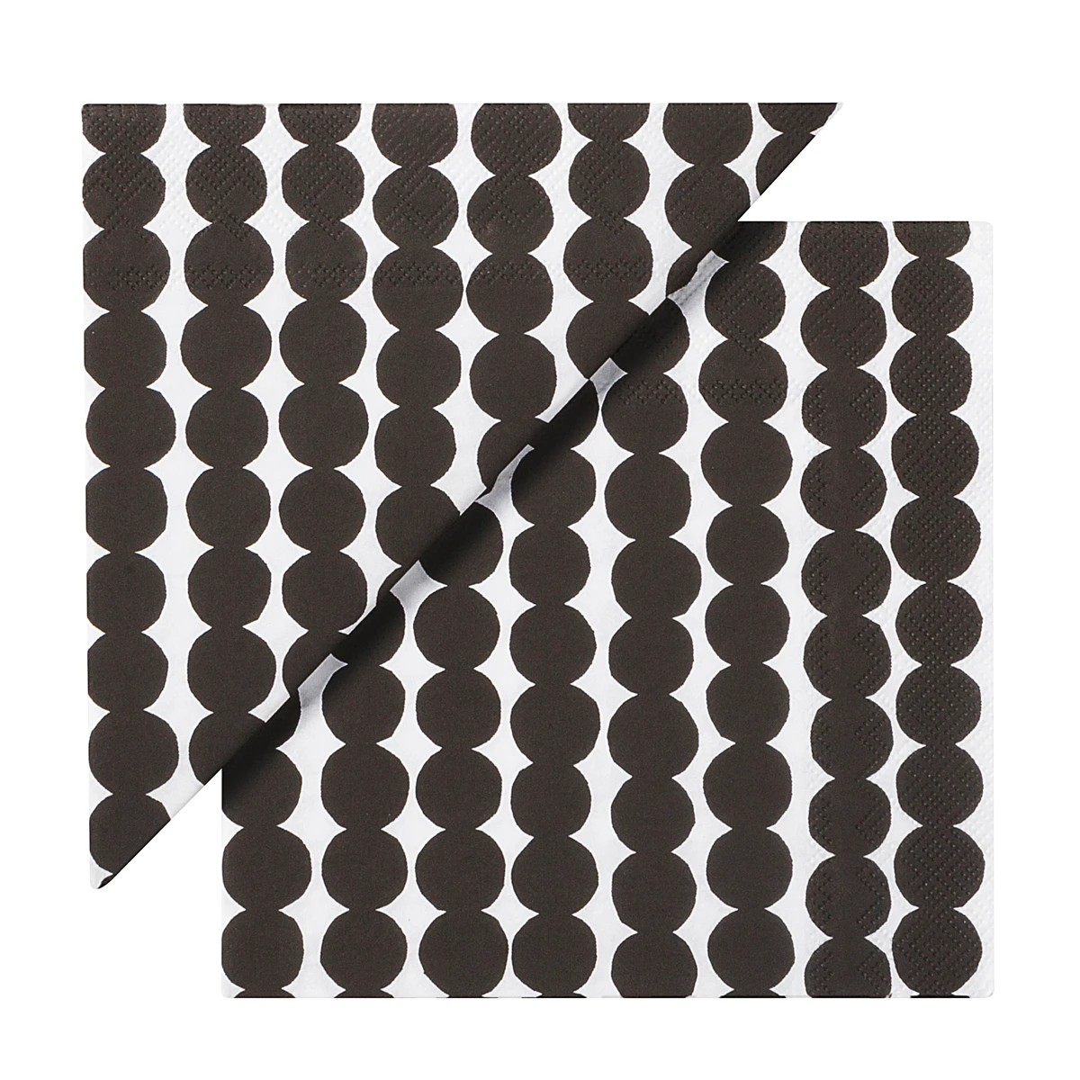 Set the table with Maija Louekari’s classic Räsymatto print. Rows of perfectly imperfect dots in black on white offer a fun detail while coordinating smoothly with your table setting. Enjoy the convenience in good conscience as these napkins are printed on eco-friendly recycled tissue with water-based dyes, and are biodegradable. Whether stacked up or set with flatware, the Marimekko Räsymatto Lunch Napkins will add a festive touch to any place setting.