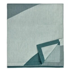 This unique print brings joy and fun to the table setting with its eye-catching mix of blue and green tones within its swinging pattern. Created by famous Finnish designer Maija Isola, the Savanni (savanna) pattern decorated atop this tablecloth showcases a large-scale print where two curvy striped lines alternate. This Marimekko Savanni tablecloth is jacquard knit and the edges of each side are stitched. It is a cotton blend, 50% being recycled, and it is machine washable for easy care in the wake of spills or messes.