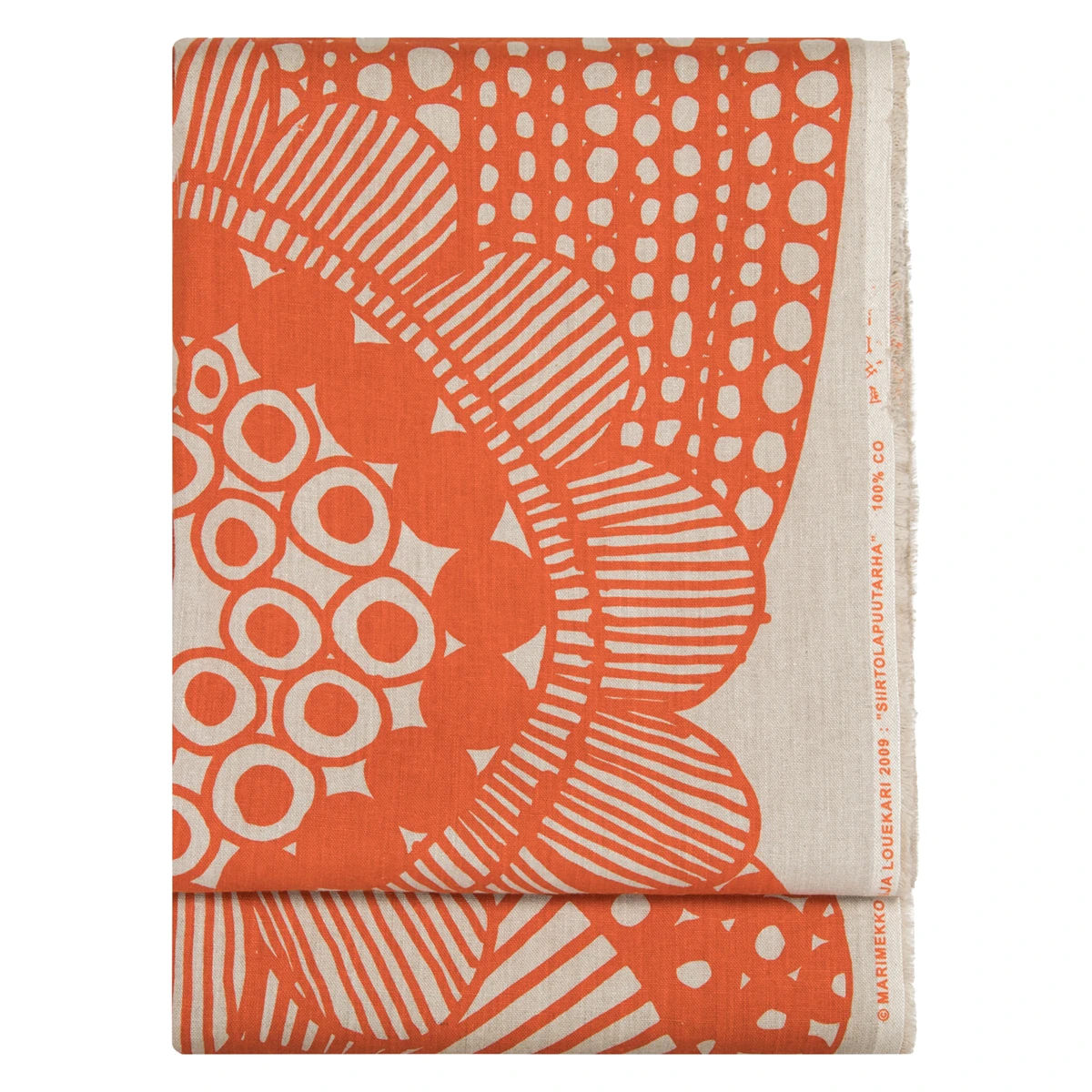 Dress up the table in cool, casual style with this Marimekko Tablecloth. The beige backdrop is the natural color of the linen, which has been left unbleached. This earthy hue is contrasted by the bright orange of Maija Loeukari’s Siirtolapuutarha (City Allotment) pattern. Inspired by rooftop gardens, it too was inspired by the contrast of nature in urban environments. Use this 100% linen tablecloth for get-togethers or everyday dining. It’s machine washable so it can be easily freshened up between place settings. A raw selvage edge adds to the raw, stripped down look of this unique table linen.