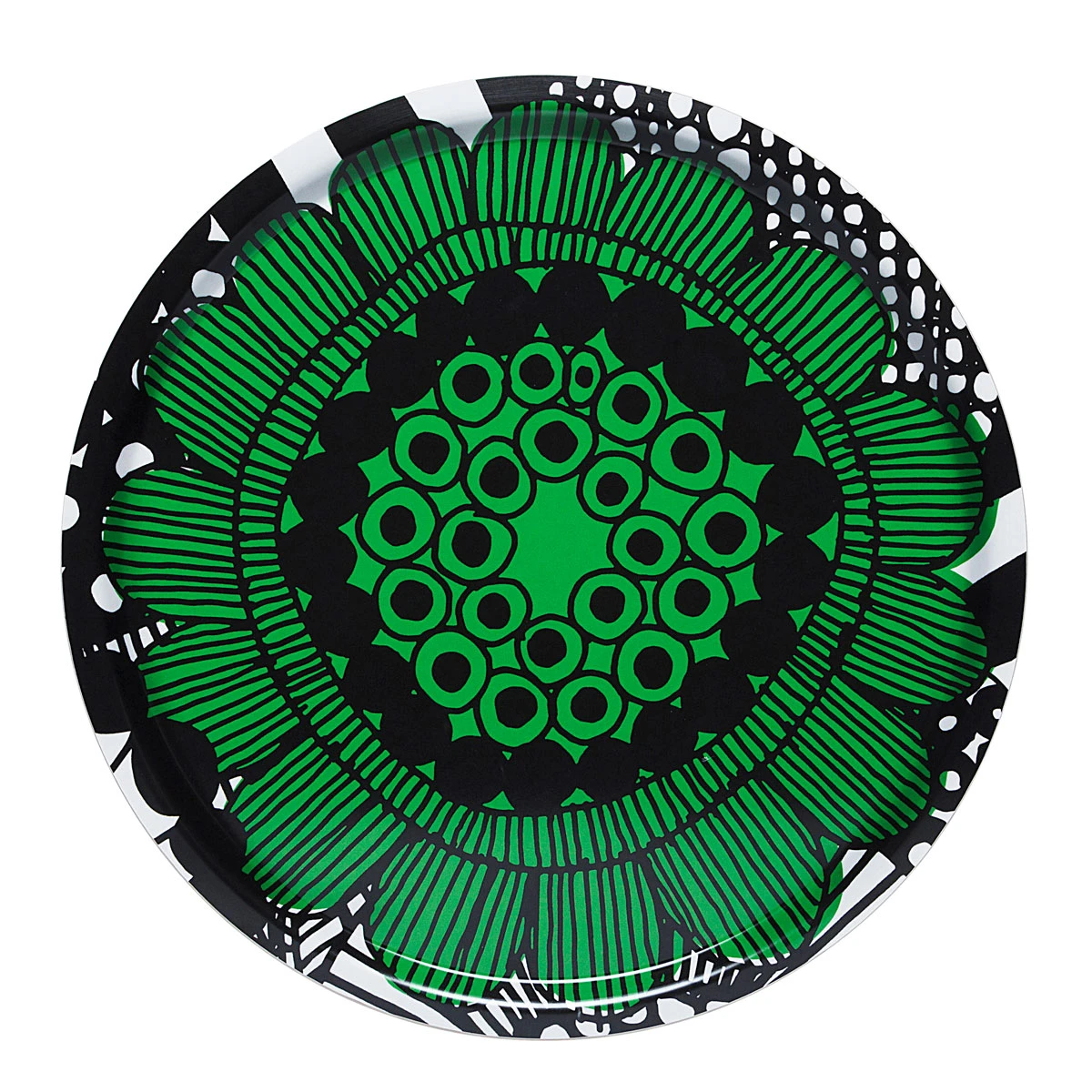 The garden spread is extra delightful on the Marimekko Siirtolapuutarha (community garden) Large Round Tray. Lightweight and shatterproof, this roomy tray is perfect for serving food and beverages at a large gathering or even as an artful tabletop accessory for any of your decorative household items.