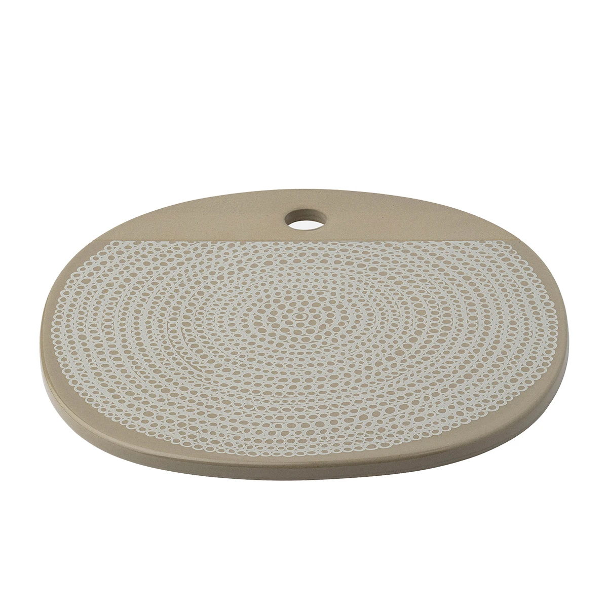 The Siirtolapuutarha / Rasymatto serving board is a part of the Oiva dinnerware collection by Marimekko. This beige and white drawing by Maija Louekari could be interpreted as a piece of corn or the center of a flower. However you interpret it, this abstract design brings a fun and modern look to your dinner service.