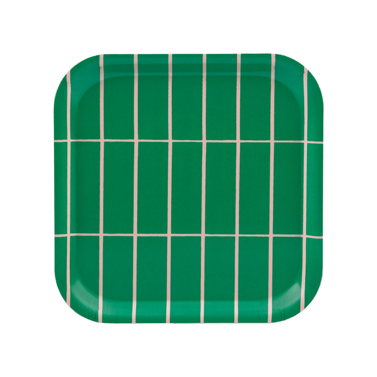 This stylish and handy small tray will be perfect for holding or serving snacks, drinks and more. Marimekko founder and designer Armi Ratia represents the simplicity and beauty of everyday life through this Tiiliskivi (brick) pattern, showcasing a unique yet beautiful mix of green and peach tones. This Marimekko Tiiliskivi square tray contains a lightweight yet durable birch plywood that will be able to hold both of your light and heavy items.