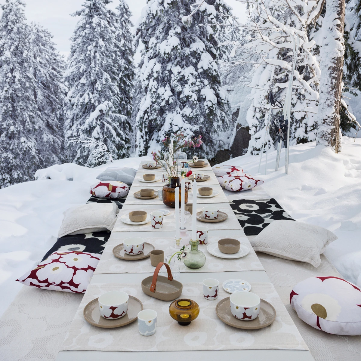 Bring a subtle print and natural beauty to your table for all the holiday meals the season brings. Maija Isola’s Unikko print will match any tablescape in simple shades of beige. The soft cotton-linen table runner is machine washable to keep crisp and clean between place settings.