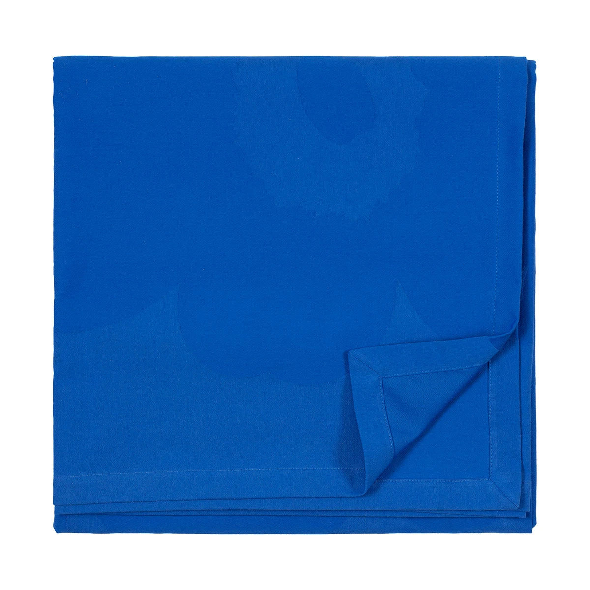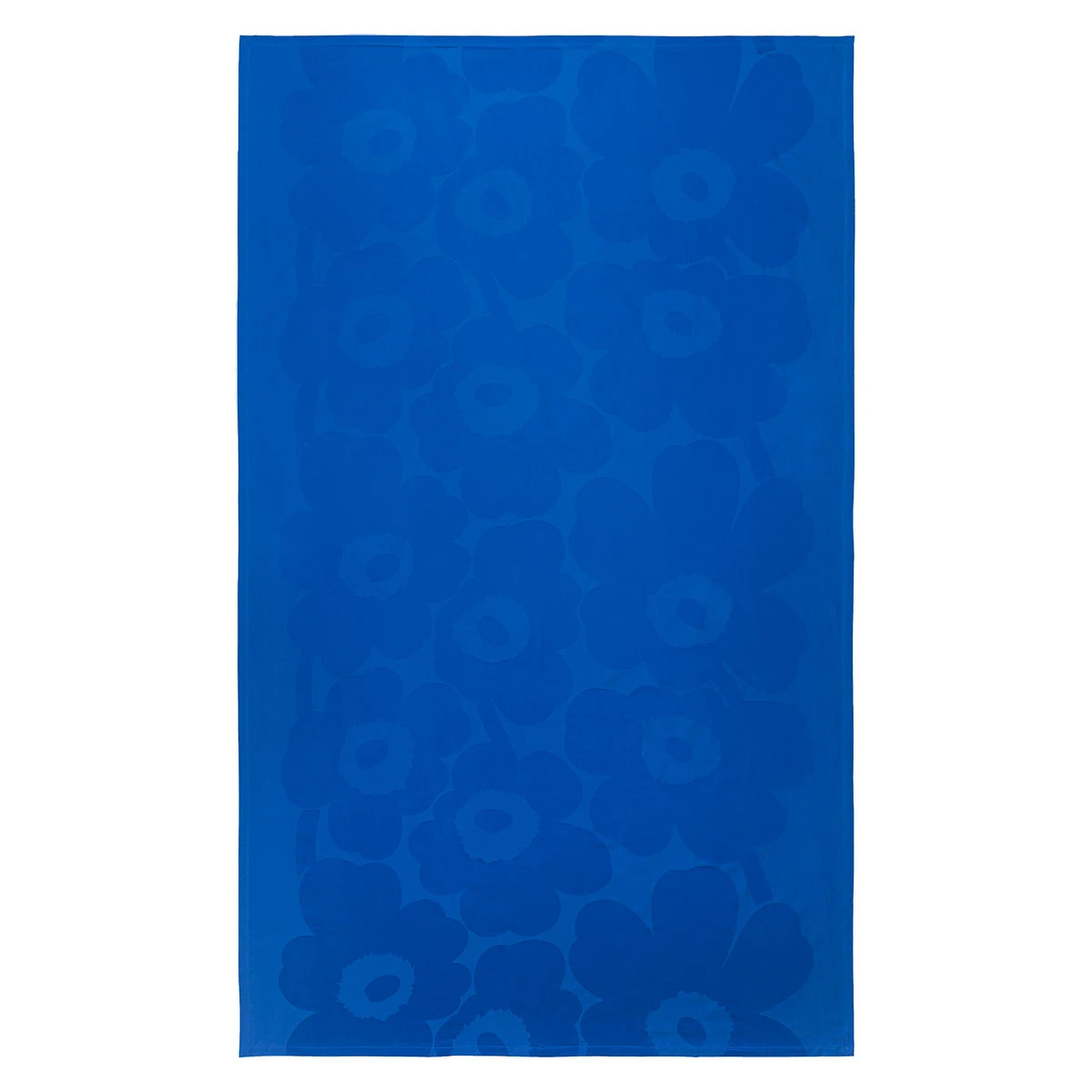 Maija Isola’s iconic poppies subtly grace this Marimekko Tablecloth in an eye-catching royal blue colorway. Decorate your table in Unikko fashion, effortlessly accenting your kitchen with its unique and vibrant color. With its style also comes comfort and function, as the Marimekko Unikko Royal Blue Tablecloth is made out of 100% soft cotton, 50% being recycled, with a jacquard knit. It is machine washable when needed, making for easy everyday use.