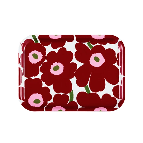 Please note: Each tray is created directly from original Marimekko fabric, so wrinkles in the fabric (especially where the fabric wraps at the corners) are an inevitable and natural occurrence. Also, the design on your tray may be different from the tray pictured due to the long repeat of the pattern.