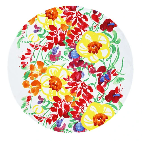 Like a scene from a sweet, summertime dream, dine atop a glorious garden of lush leaves and beautiful blossoms with the Marimekko Ursula White/Multi Round Tablecloth. Sweet peas, poppies and peppergrass are among the beauties depicted in the wonderful, watercolor-like world of Paavo Halonen’s Ursula pattern. Drape this print atop the kitchen, dining room, or patio table for a mess-free meal, as this 100% cotton table linen is conveniently machine-washable. Wherever this practical and picturesque piece is used, it will only enhance the scrumptious spread.