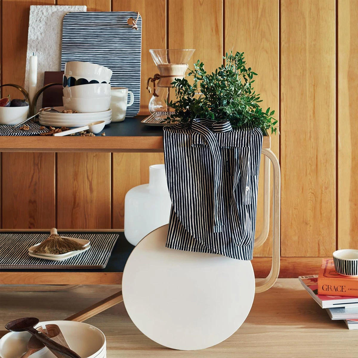 The perfect size for serving appetizers or desserts, the white/black oblong tray is both an attractive and accommodating piece to round out your service settings. Crafted from sturdy plywood, the tray is well-made and smartly designed. Part of Vuokko Eskolin-Nurmesniemi Varvunraita Collection, this tray is adorned with her timeless black & white lines. Serve up something special on this one-of-a-kind Varvunraita White/Black oblong Tray.