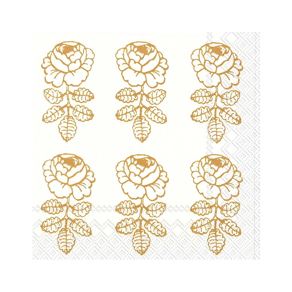 Called Vihkiruusu (Wedding Rose), this pattern by Maija Isola is extra luxe in a white and gold colorway. Napkins don’t do the metallic, shimmery detail justice. This pack of 20 napkins is perfect addition to holiday parties or other festive celebrations. Printed with non-toxic, water soluble colors on recycled tissue, these 100% biodegradable napkins are a more eco-friendly way to enjoy the cuteness and convenience of printed paper napkins.