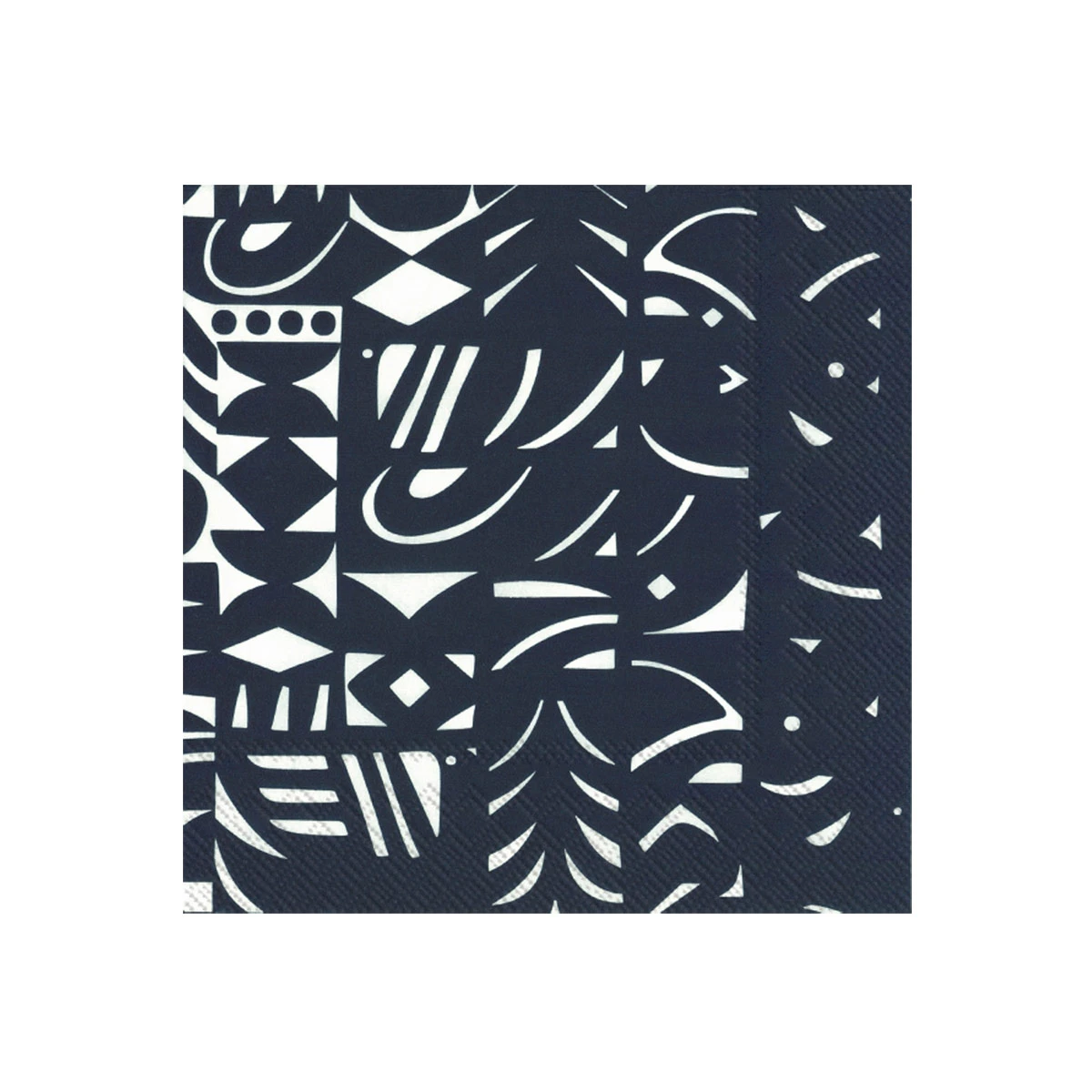 The geometric shapes of the Yön Varjo pattern are impactful in dark blue on a crisp white backdrop. Printed with non-toxic, water-based colors on recycled tissue, these 100% biodegradable napkins are a more eco-friendly way to enjoy the convenience of disposable napkins.